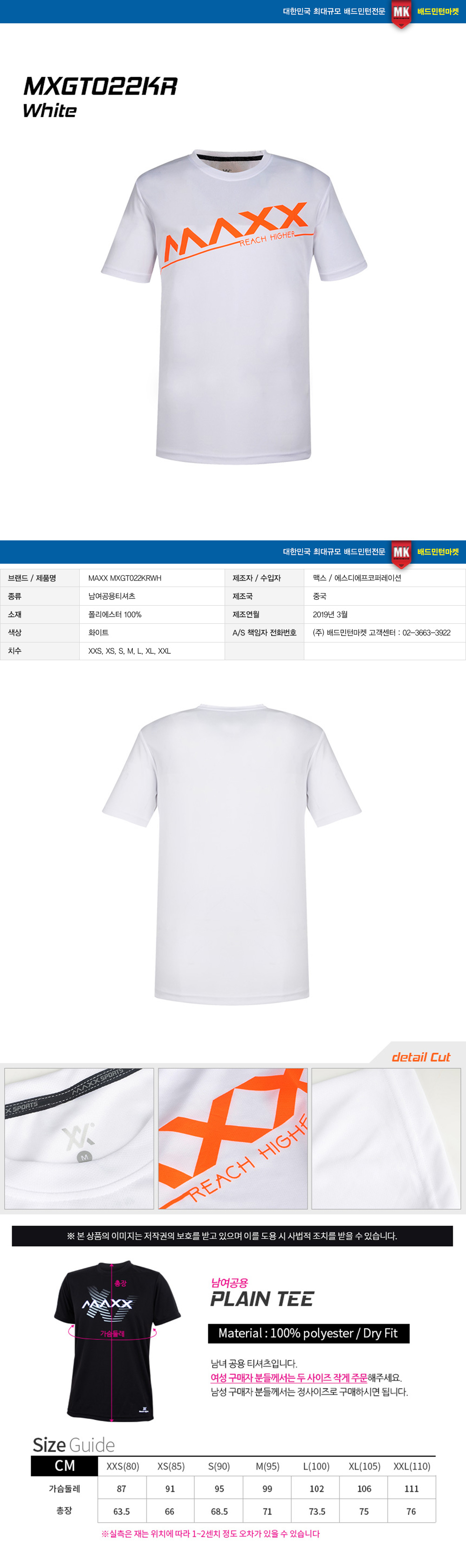 | Ä¡¼ö | XXS(80), XS(85), S(90), M(95), L(100), XL(105), XXL(110) |